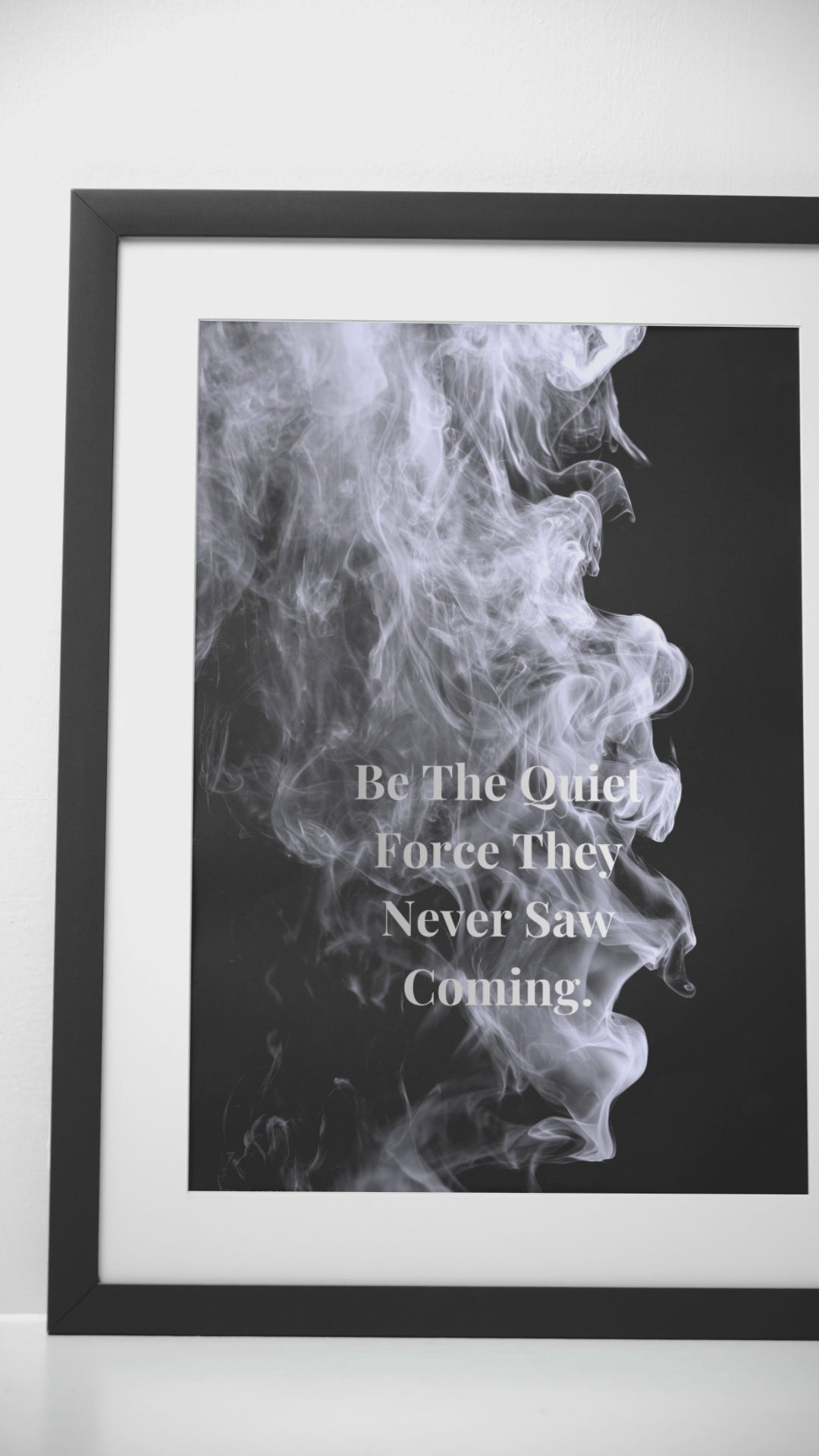 Unleash your inner strength with our “Be The Quiet Force They Never Saw Coming” poster with a bold reminder that true power doesn’t need to shout. Designed in our striking Smoke Edition style, this print adds depth, focus, and intensity to any room. Perfect for gym walls, home offices, and creative spaces, it's a daily nudge to rise, evolve, and let your actions speak louder than words.