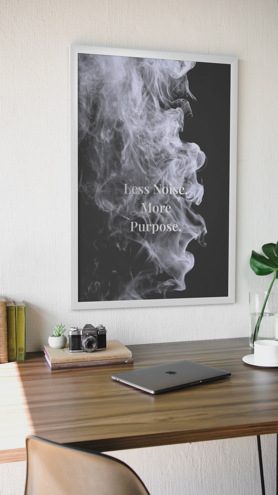 Less Noise. More Purpose. Inspirational Poster | Smoke Edition | Mindfulness, Focus & Office Decor