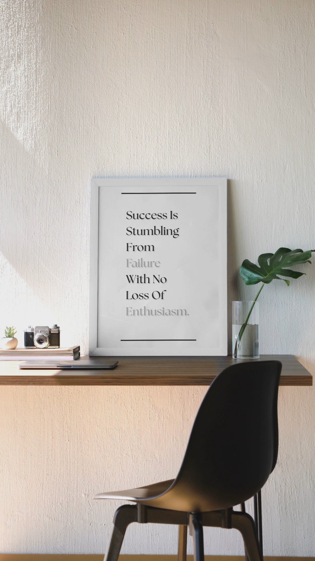 Encourage optimism through adversity with “Success Is Stumbling From Failure With No Loss Of Enthusiasm.” A timeless quote that embodies persistence and drive.