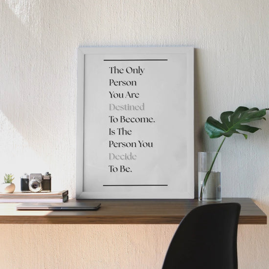 Empower your space with this iconic quote, “The Only Person You Are Destined To Become Is The Person You Decide To Be.” A meaningful print that celebrates personal choice and determination.