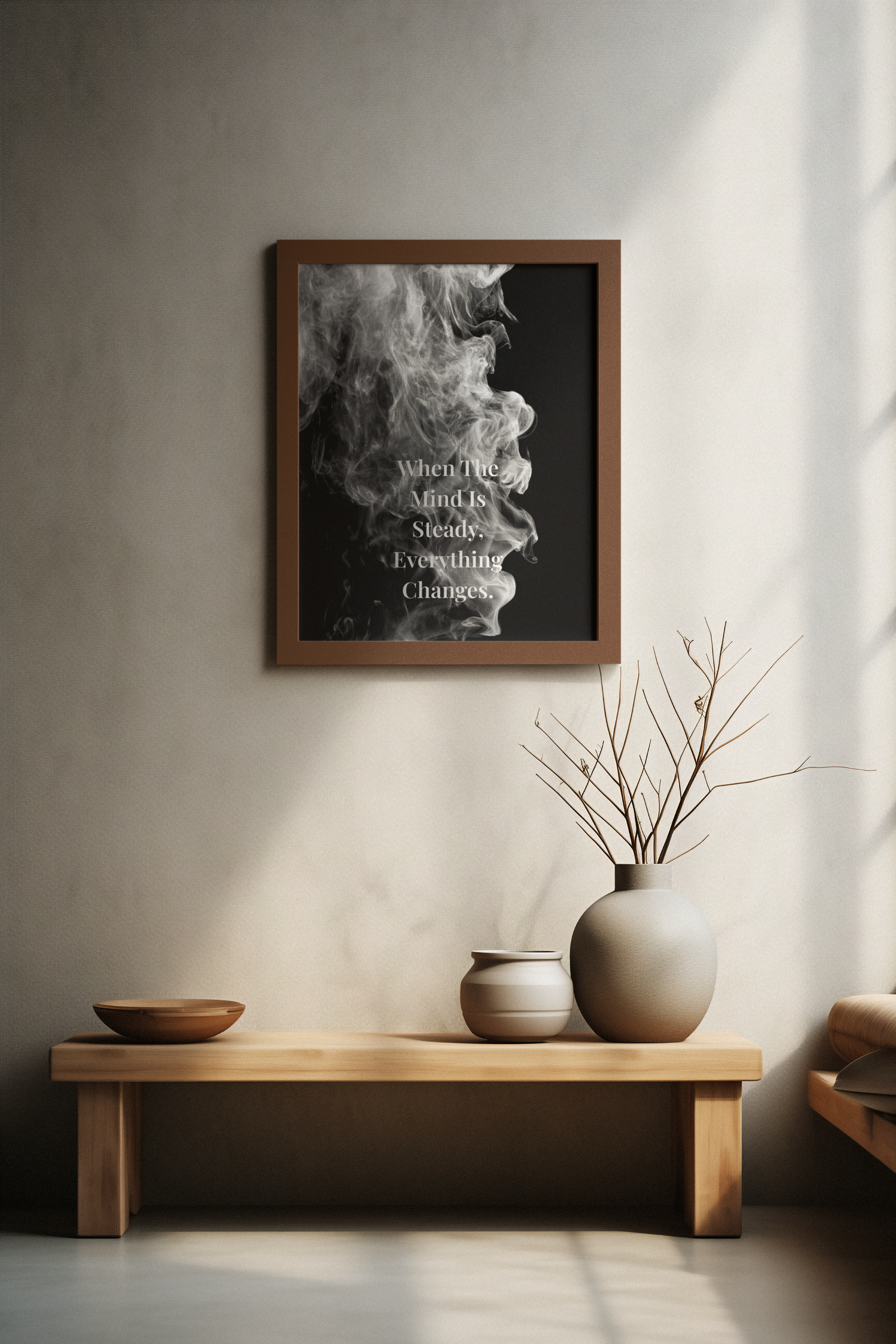 Our “When The Mind Is Steady, Everything Changes.” poster is a reminder that clarity and balance create the foundation for meaningful change. Designed in our signature Smoke Edition style, this print brings calm focus, depth, and quiet strength to any space. Ideal for home offices, meditation areas, or reflective environments, it encourages composure, mental resilience, and steady progress through life’s challenges.