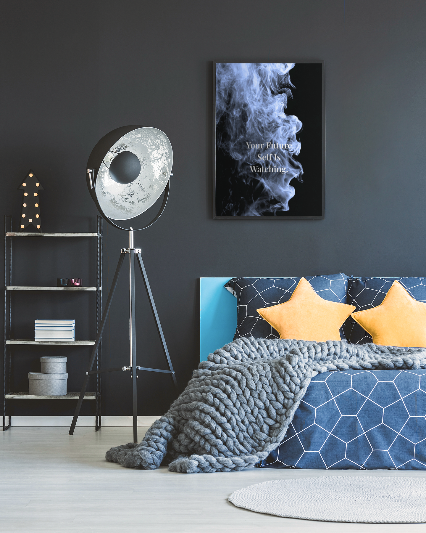 Our “Your Future Self Is Watching.” poster is a reminder that today’s choices shape tomorrow’s life. Designed in our signature Smoke Edition style, this print brings focus, intention, and quiet accountability to any space. Ideal for home offices, gyms, or disciplined environments, it encourages responsibility, consistency, and acting in alignment with the future you want to become.